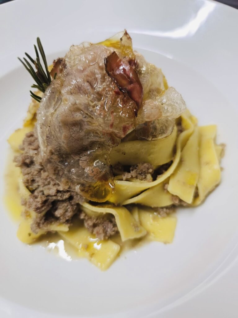 Pappardelle con ragu di Cinghiale e croccante del guanciale