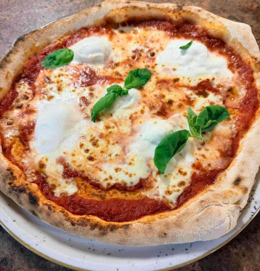 (Pomodoro San Marzano D.O.P ,fior di latte,bufala melanzane fritte ,grana, olio,basilico)