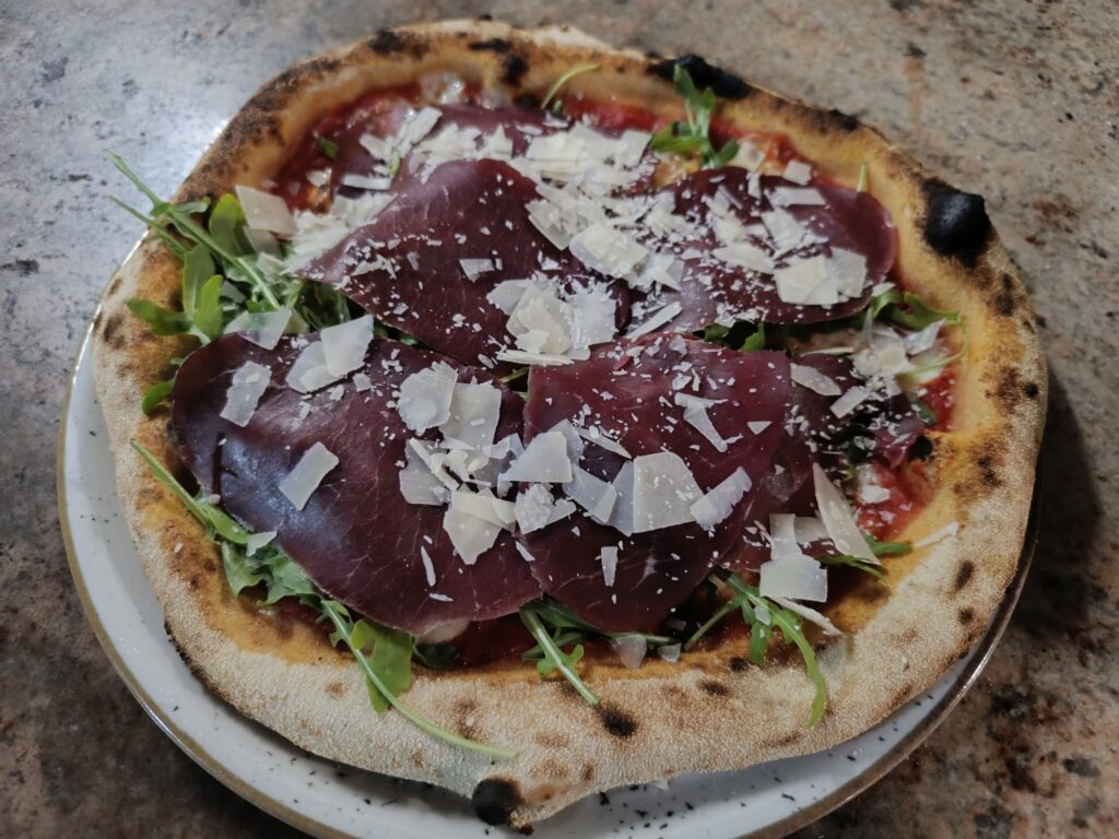 ( pomodoro San Marzano D.O.P ,fior di latte, Bresaola punta d'Anca , rucola e grana)