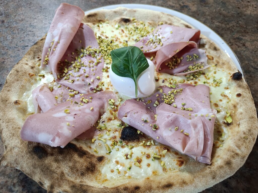(fior di latte,mortadella IGP di Bologna, Burrata, Pistacchio olio)