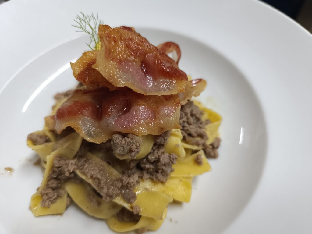 Pappardelle con ragu di Cinghiale e croccante del guanciale
